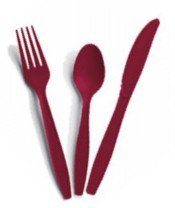 Plastic Cutlery 24 pieces (8 Each: Knives, forks & spoons) Party Supplies- Burgundy Feature