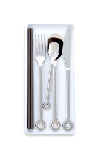 ID Cutlery by Richard Hutten. Eating is fun and social, so my cutlery has to contribute to the fun of eating. Therefore I created cutlery that is easy to use, playful and no-nonsense. The shapes are essentially geometrical and carry the trademark ‘Hutten-loop'. Use it as a necklace. Hang it on a spike. Make it yours. Dishwasher safe. Richard Hutten is probably the internationally most well-known Dutch designer, or at least one of the most unconventional Dutch designers. He graduated from the Academy Industrial Design in Eindhoven in 1991. He produces designs for furniture, products, interior and exhibitions in his own studio. with Chopsticks, Dinner Knife, Dinner Fork, Dinner Spoon and Dessert Spoon.