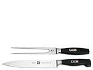 A quality carving set is a must-have for clean, precise slicing. 2 piece set includes: 8 carving knife and a 6 meat fork. BONUS: Cookbook on CD with 121 recipes. Full-tang SIGMAFORCE blade is forged to exacting standards for balance and lasting sharpness. Friodur ice hardened stainless steel resists corrosion and pitting while maintaining superior blade strength. Precision laser controlled edge results in a consistent blade angle that stays sharper longer. Super Bolster provides excellent weight balance and ensures safe handling. Patented seamless polypropylene handles are extremely durable and are more sanitary than wood handles. Hand washing recommended. Made in Germany.